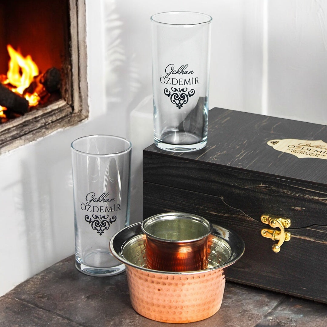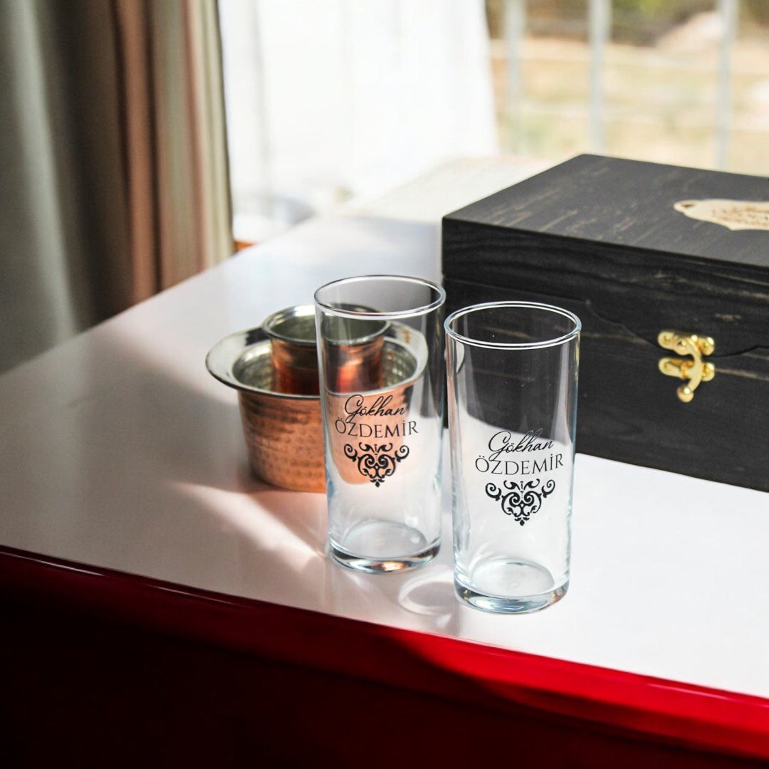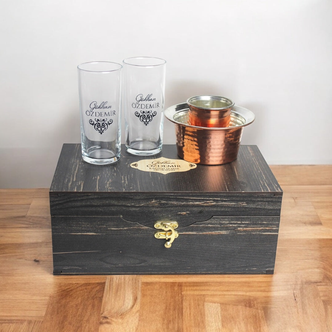 Keyf-i Rakı - Ahşap Kutulu Kişiye Özel Ehlikeyf & Kadeh Seti