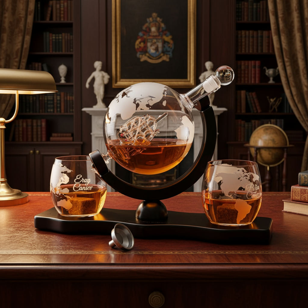 World - Kişiye Özel İsimli Viski Bardağı ve Viski Şişeli Viski Seti
